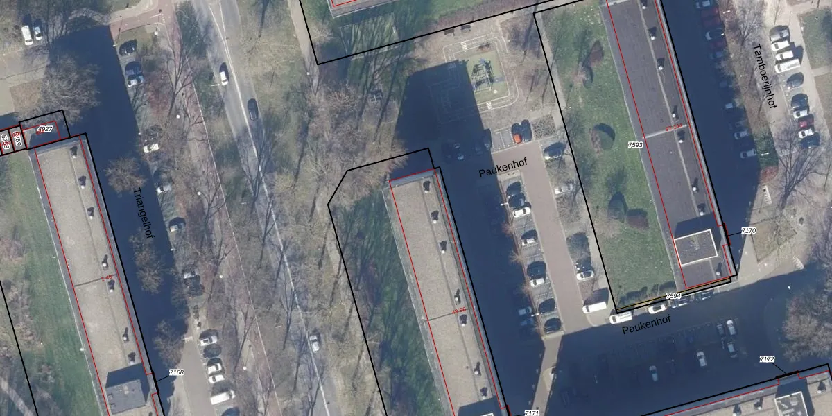 Het perceel waarop Paukenhof 56-GA22 staat heeft een oppervlakte van 4615 m². Dit is een zeer groot perceel. De perceeloppervlakte wordt geregistreerd door het Kadaster. Gedetailleerde informatie over de maten van dit perceel kunt u vinden in het rapport Kadastrale kaart met maatvoering van Paukenhof 56-GA22.