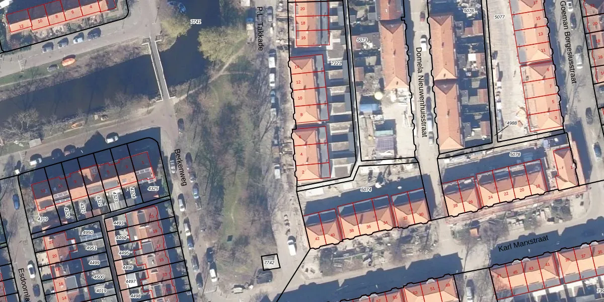 Het perceel waarop P.L. Takkade 4 staat heeft een oppervlakte van 1148 m². Dit is een zeer groot perceel. De perceeloppervlakte wordt geregistreerd door het Kadaster. Gedetailleerde informatie over de maten van dit perceel kunt u vinden in het rapport Kadastrale kaart met maatvoering van P.L. Takkade 4.