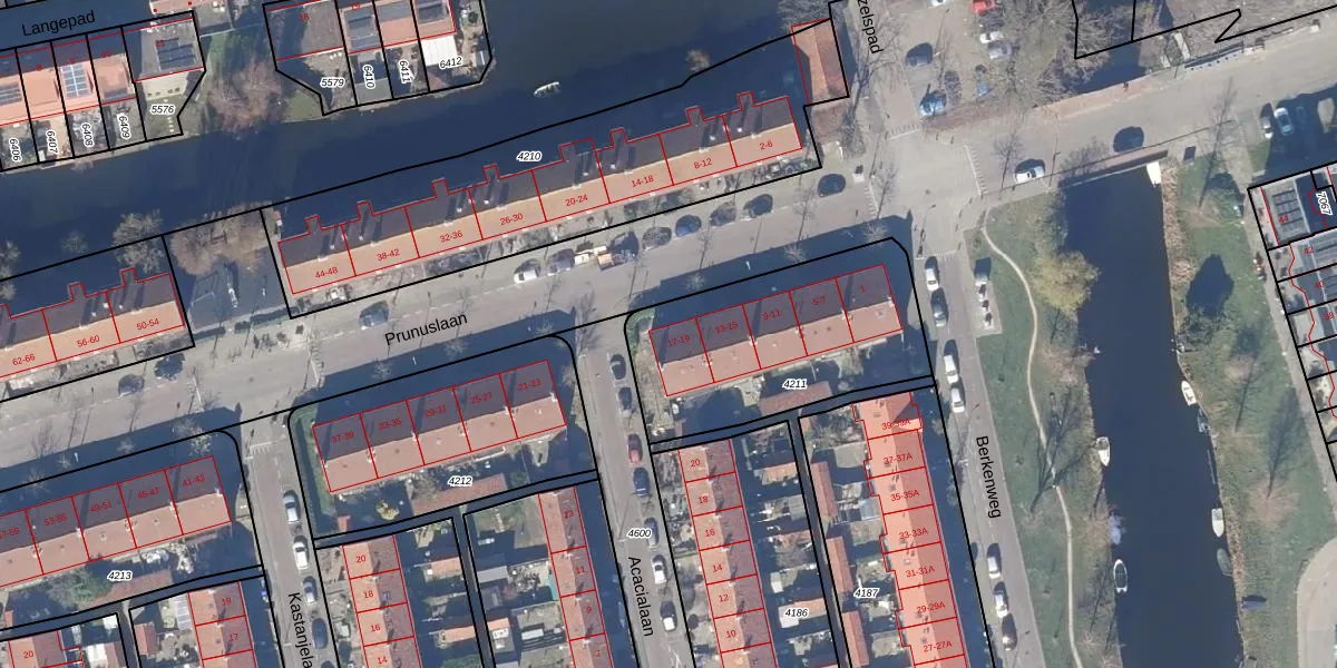 Prunuslaan 19 is gelegen op kadastraal perceel ZDK00A4211. Deze kadastrale aanduiding is uniek en wordt gebruikt door het Kadaster om eigendomsrechten en andere zakelijke rechten vast te leggen. Het perceel maakt onderdeel uit van de kadastrale gemeente Zaandijk.