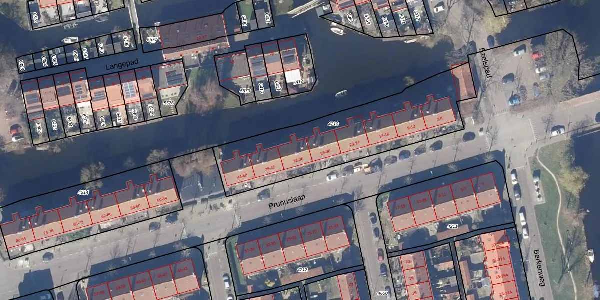 Prunuslaan 34 is gelegen op kadastraal perceel ZDK00A4210. Deze kadastrale aanduiding is uniek en wordt gebruikt door het Kadaster om eigendomsrechten en andere zakelijke rechten vast te leggen. Het perceel maakt onderdeel uit van de kadastrale gemeente Zaandijk.