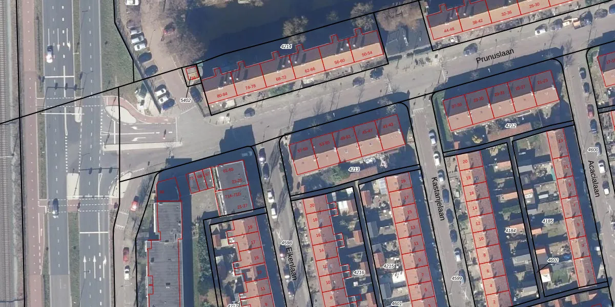 Prunuslaan 57 is gelegen op kadastraal perceel ZDK00A4213. Deze kadastrale aanduiding is uniek en wordt gebruikt door het Kadaster om eigendomsrechten en andere zakelijke rechten vast te leggen. Het perceel maakt onderdeel uit van de kadastrale gemeente Zaandijk.
