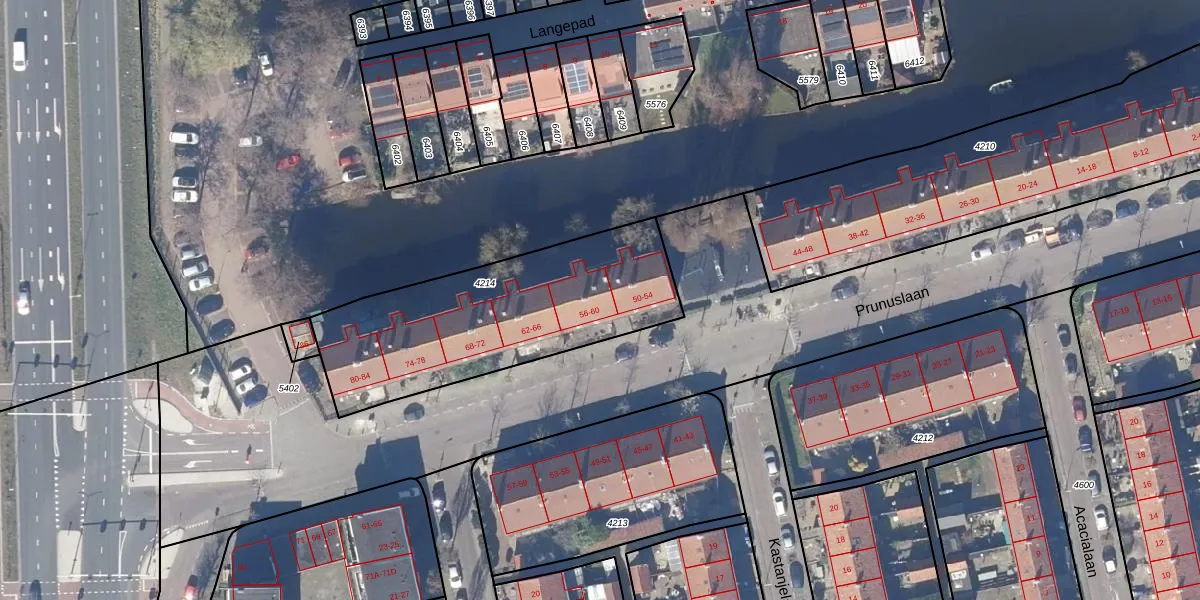 Prunuslaan 60 is gelegen op kadastraal perceel ZDK00A4214. Deze kadastrale aanduiding is uniek en wordt gebruikt door het Kadaster om eigendomsrechten en andere zakelijke rechten vast te leggen. Het perceel maakt onderdeel uit van de kadastrale gemeente Zaandijk.