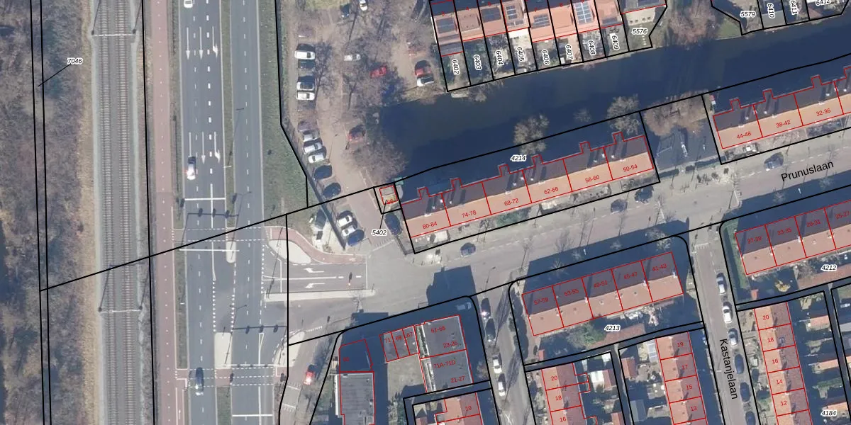 Prunuslaan 82 is gelegen op kadastraal perceel ZDK00A4214. Deze kadastrale aanduiding is uniek en wordt gebruikt door het Kadaster om eigendomsrechten en andere zakelijke rechten vast te leggen. Het perceel maakt onderdeel uit van de kadastrale gemeente Zaandijk.