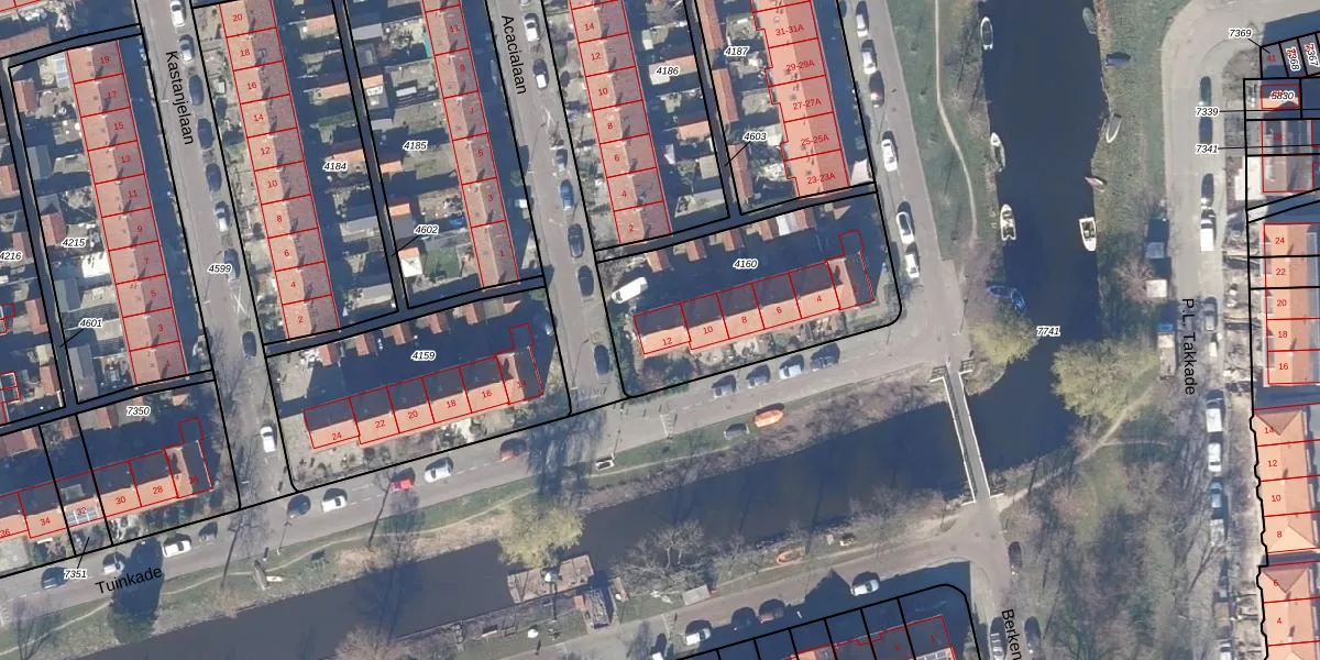 Het perceel waarop Tuinkade 12 staat heeft een oppervlakte van 895 m². Dit is een groot perceel. De perceeloppervlakte wordt geregistreerd door het Kadaster. Gedetailleerde informatie over de maten van dit perceel kunt u vinden in het rapport Kadastrale kaart met maatvoering van Tuinkade 12.