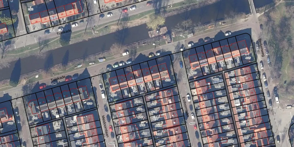 Het perceel waarop Tuinkade 19 staat heeft een oppervlakte van 115 m². Dit is een middelgroot perceel. De perceeloppervlakte wordt geregistreerd door het Kadaster. Gedetailleerde informatie over de maten van dit perceel kunt u vinden in het rapport Kadastrale kaart met maatvoering van Tuinkade 19.