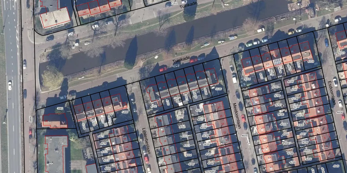 Het perceel waarop Tuinkade 37 staat heeft een oppervlakte van 115 m². Dit is een middelgroot perceel. De perceeloppervlakte wordt geregistreerd door het Kadaster. Gedetailleerde informatie over de maten van dit perceel kunt u vinden in het rapport Kadastrale kaart met maatvoering van Tuinkade 37.