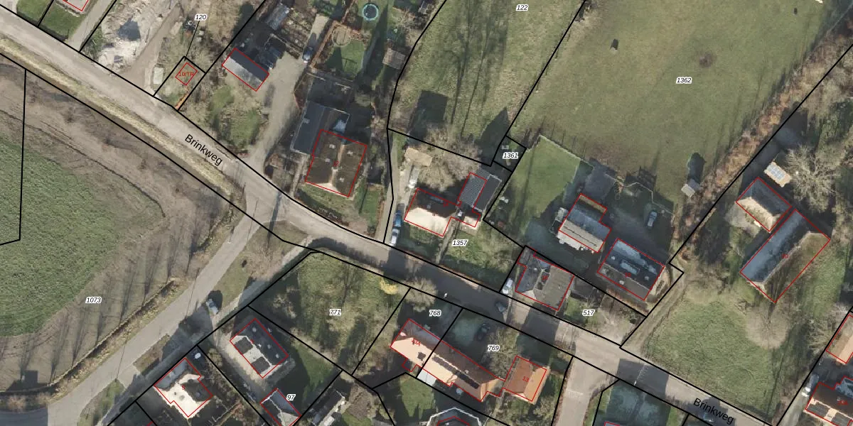 Het perceel waarop Brinkweg 14 staat heeft een oppervlakte van 764 m². Dit is een groot perceel. De perceeloppervlakte wordt geregistreerd door het Kadaster. Gedetailleerde informatie over de maten van dit perceel kunt u vinden in het rapport Kadastrale kaart met maatvoering van Brinkweg 14.