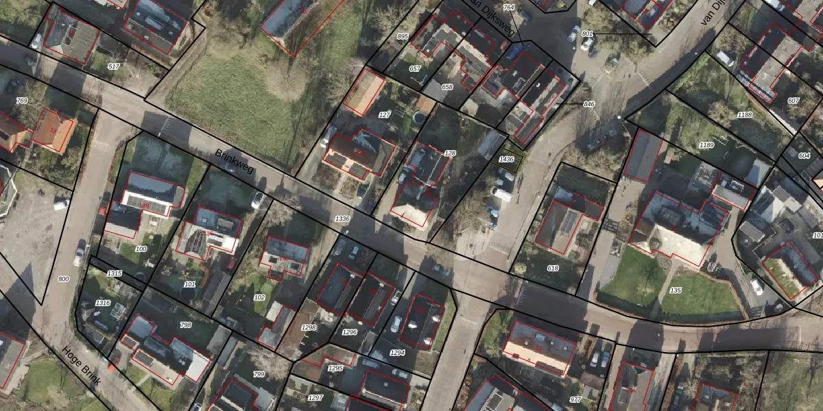 Het perceel waarop Brinkweg 22 staat heeft een oppervlakte van 568 m². Dit is een groot perceel. De perceeloppervlakte wordt geregistreerd door het Kadaster. Gedetailleerde informatie over de maten van dit perceel kunt u vinden in het rapport Kadastrale kaart met maatvoering van Brinkweg 22.