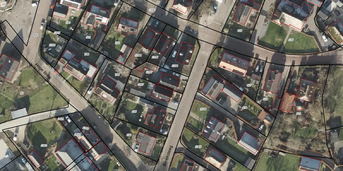 Het perceel waarop Broeksteeg 1 staat heeft een oppervlakte van 315 m². Dit is een groot perceel. De perceeloppervlakte wordt geregistreerd door het Kadaster. Gedetailleerde informatie over de maten van dit perceel kunt u vinden in het rapport Kadastrale kaart met maatvoering van Broeksteeg 1.