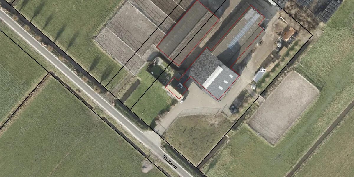Het perceel waarop Sloetweg 2 staat heeft een oppervlakte van 5000 m². Dit is een zeer groot perceel. De perceeloppervlakte wordt geregistreerd door het Kadaster. Gedetailleerde informatie over de maten van dit perceel kunt u vinden in het rapport Kadastrale kaart met maatvoering van Sloetweg 2.