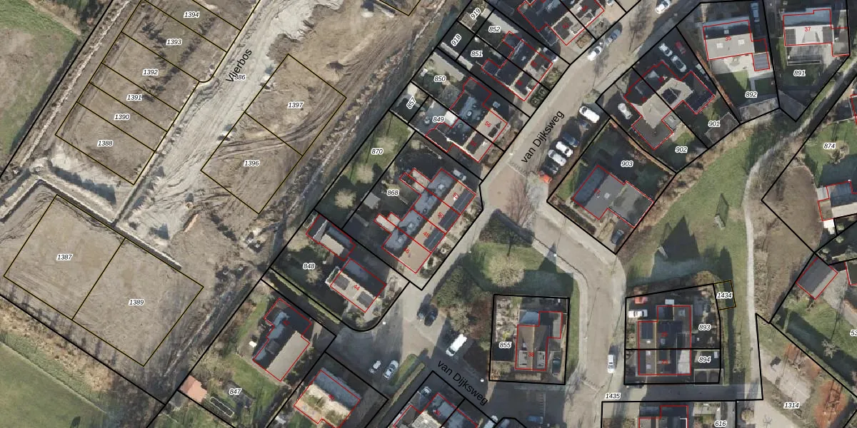 Het perceel waarop van Dijksweg 50 staat heeft een oppervlakte van 665 m². Dit is een groot perceel. De perceeloppervlakte wordt geregistreerd door het Kadaster. Gedetailleerde informatie over de maten van dit perceel kunt u vinden in het rapport Kadastrale kaart met maatvoering van van Dijksweg 50.