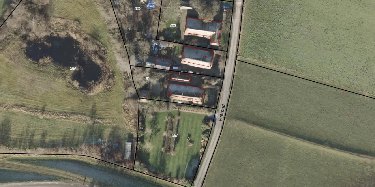 Het perceel waarop Veerpad 2 staat heeft een oppervlakte van 767 m². Dit is een groot perceel. De perceeloppervlakte wordt geregistreerd door het Kadaster. Gedetailleerde informatie over de maten van dit perceel kunt u vinden in het rapport Kadastrale kaart met maatvoering van Veerpad 2.
