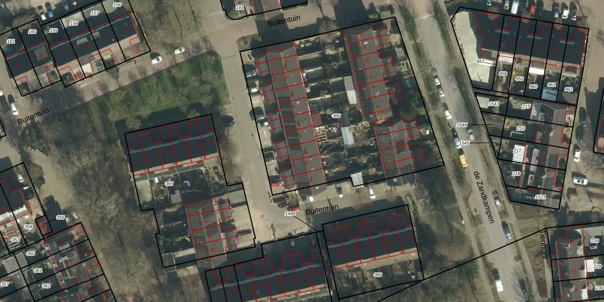 Buitentuin 21 is gelegen op kadastraal perceel ZBM00L366. Deze kadastrale aanduiding is uniek en wordt gebruikt door het Kadaster om eigendomsrechten en andere zakelijke rechten vast te leggen. Het perceel maakt onderdeel uit van de kadastrale gemeente Zaltbommel.