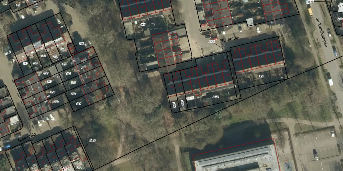 Buitentuin 37 is gelegen op kadastraal perceel ZBM00L1696. Deze kadastrale aanduiding is uniek en wordt gebruikt door het Kadaster om eigendomsrechten en andere zakelijke rechten vast te leggen. Het perceel maakt onderdeel uit van de kadastrale gemeente Zaltbommel.