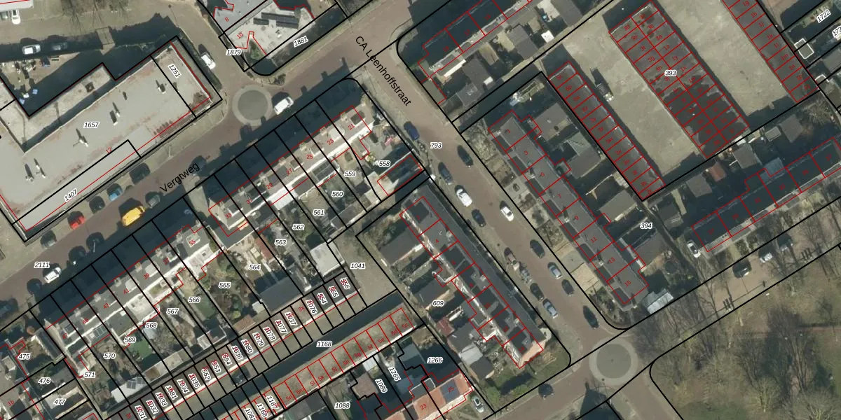 Het perceel waarop CA Leenhoffstraat 2 staat heeft een oppervlakte van 1218 m². Dit is een zeer groot perceel. De perceeloppervlakte wordt geregistreerd door het Kadaster. Gedetailleerde informatie over de maten van dit perceel kunt u vinden in het rapport Kadastrale kaart met maatvoering van CA Leenhoffstraat 2.