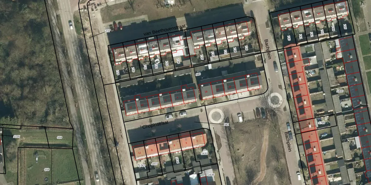 Het perceel waarop Chopinstraat 2 staat heeft een oppervlakte van 1720 m². Dit is een zeer groot perceel. De perceeloppervlakte wordt geregistreerd door het Kadaster. Gedetailleerde informatie over de maten van dit perceel kunt u vinden in het rapport Kadastrale kaart met maatvoering van Chopinstraat 2.