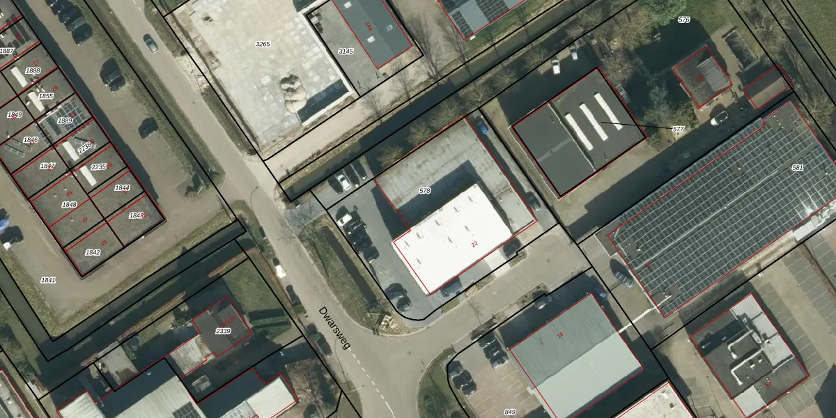 Dwarsweg 22-b is gelegen op kadastraal perceel ZBM00K578. Deze kadastrale aanduiding is uniek en wordt gebruikt door het Kadaster om eigendomsrechten en andere zakelijke rechten vast te leggen. Het perceel maakt onderdeel uit van de kadastrale gemeente Zaltbommel.