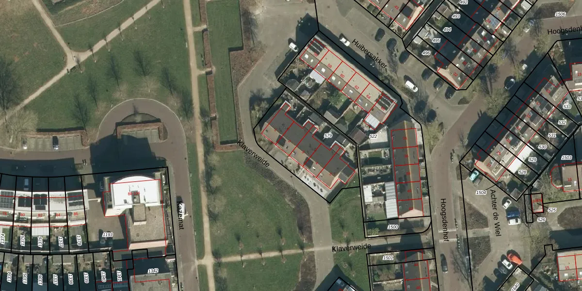 Het perceel waarop Klaverweide 2 staat heeft een oppervlakte van 770 m². Dit is een groot perceel. De perceeloppervlakte wordt geregistreerd door het Kadaster. Gedetailleerde informatie over de maten van dit perceel kunt u vinden in het rapport Kadastrale kaart met maatvoering van Klaverweide 2.
