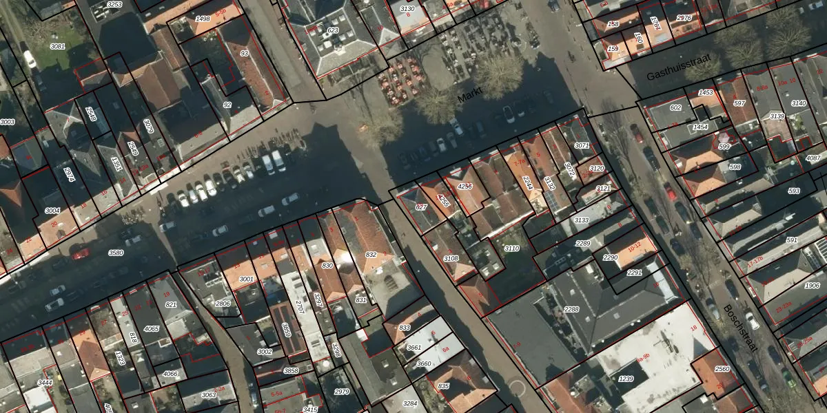Het perceel waarop Markt 15 staat heeft een oppervlakte van 85 m². Dit is een klein perceel. De perceeloppervlakte wordt geregistreerd door het Kadaster. Gedetailleerde informatie over de maten van dit perceel kunt u vinden in het rapport Kadastrale kaart met maatvoering van Markt 15.