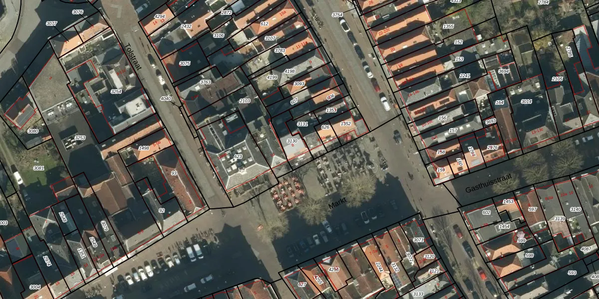 Het perceel waarop Markt 8 staat heeft een oppervlakte van 128 m². Dit is een middelgroot perceel. De perceeloppervlakte wordt geregistreerd door het Kadaster. Gedetailleerde informatie over de maten van dit perceel kunt u vinden in het rapport Kadastrale kaart met maatvoering van Markt 8.