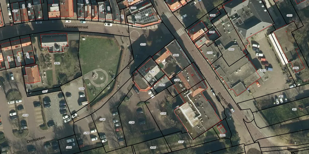Omhoeken 13 is gelegen op kadastraal perceel ZBM00A2825. Deze kadastrale aanduiding is uniek en wordt gebruikt door het Kadaster om eigendomsrechten en andere zakelijke rechten vast te leggen. Het perceel maakt onderdeel uit van de kadastrale gemeente Zaltbommel.