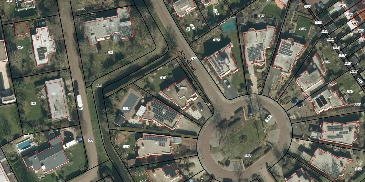 Het perceel waarop Schoolstraat 2 staat heeft een oppervlakte van 704 m². Dit is een groot perceel. De perceeloppervlakte wordt geregistreerd door het Kadaster. Gedetailleerde informatie over de maten van dit perceel kunt u vinden in het rapport Kadastrale kaart met maatvoering van Schoolstraat 2.
