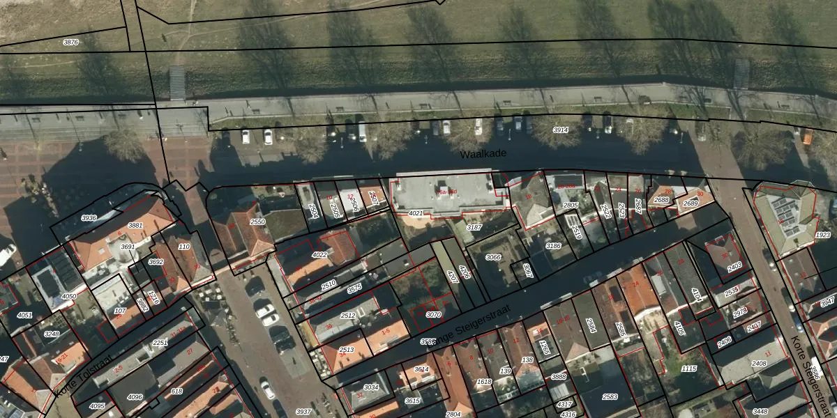 Het perceel waarop Waalkade 16-b staat heeft een oppervlakte van 476 m². Dit is een groot perceel. De perceeloppervlakte wordt geregistreerd door het Kadaster. Gedetailleerde informatie over de maten van dit perceel kunt u vinden in het rapport Kadastrale kaart met maatvoering van Waalkade 16-b.