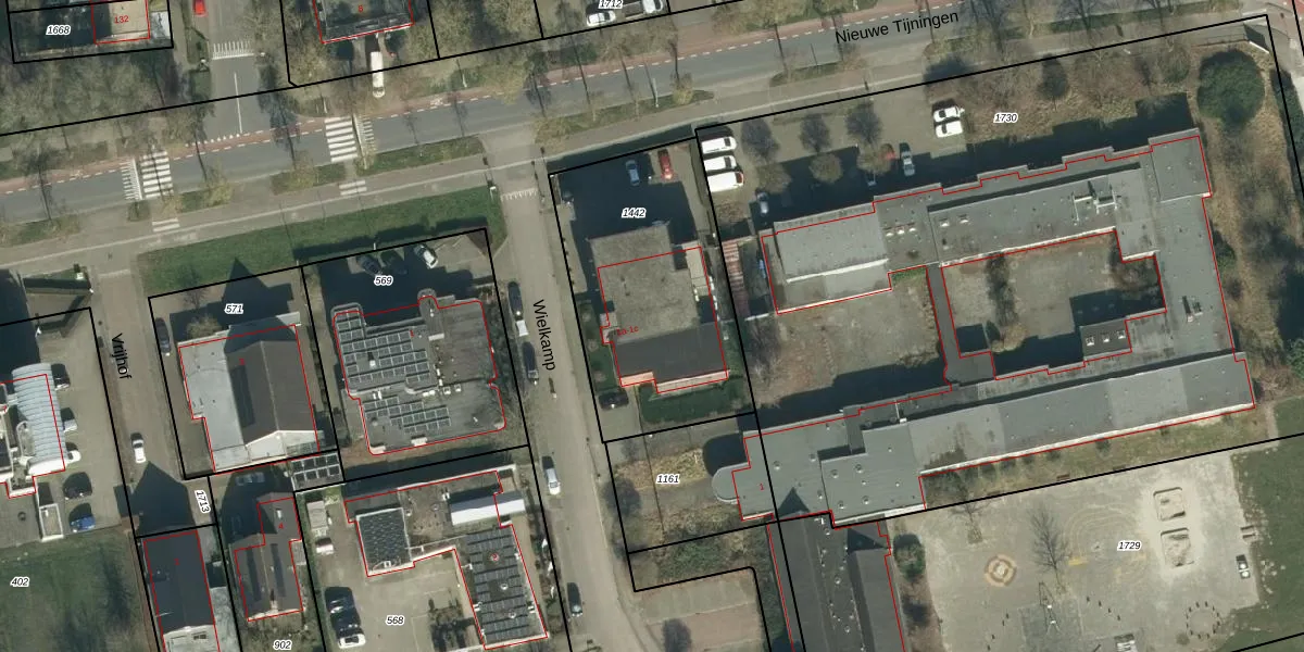 Het perceel waarop Wielkamp 1-f staat heeft een oppervlakte van 981 m². Dit is een groot perceel. De perceeloppervlakte wordt geregistreerd door het Kadaster. Gedetailleerde informatie over de maten van dit perceel kunt u vinden in het rapport Kadastrale kaart met maatvoering van Wielkamp 1-f.