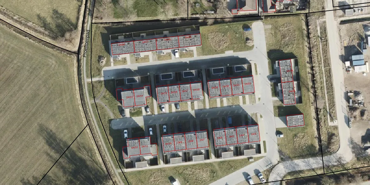 Het adres is gelegen op perceel 62 in de sectie I en de kadastrale gemeente Kantens. De kadastrale aanduiding is aldus KTS00-I-62. Het perceel is 1,1 ha groot. Dat is kleiner dan de gemiddelde perceeloppervlakte in Kantens, dat op 2,0 ha ligt. Het grootste perceel in de kadastrale gemeente is 51,6 ha. Het kleinste perceel heeft een oppervlakte van 1 m². Op het perceel zijn 26 adressen aanwezig. De huidige grenzen van het perceel zijn digitaal in de Basisregistratie Kadaster (BRK) geregistreerd op 03-03-2003.