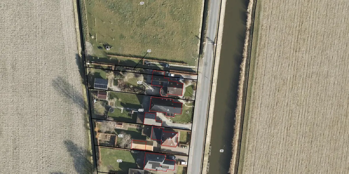 Het adres ligt op het perceel KTS00-I-315, dat zich in de kadastrale gemeente Kantens bevindt. De gemiddelde perceelgrootte in Kantens is 2,0 ha. Dit perceel is kleiner: de perceeloppervlakte bedraagt 749 m². Het kleinste perceel in de kadastrale gemeente is 1 m² groot. De grootste perceeloppervlakte is 51,6 ha. Dit is het enige adres dat aanwezig is op het perceel. De laatste wijziging in het de Basisregistratie Kadaster (BRK) was op 14-11-1997.