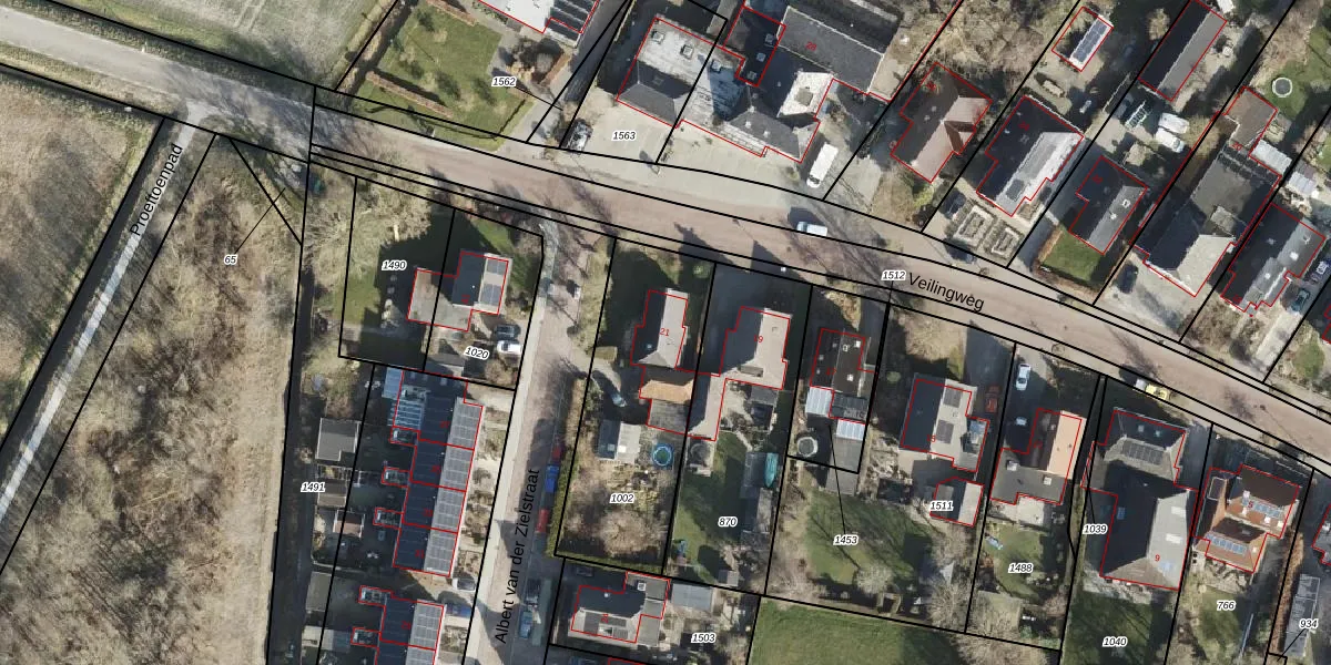 Het perceel waarop Veilingweg 21 staat heeft een oppervlakte van 720 m². Dit is een groot perceel. De perceeloppervlakte wordt geregistreerd door het Kadaster. Gedetailleerde informatie over de maten van dit perceel kunt u vinden in het rapport Kadastrale kaart met maatvoering van Veilingweg 21.