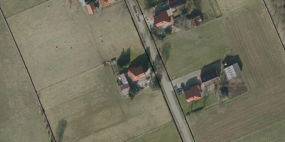 Rode Dorp 5 is gelegen op kadastraal perceel NWD02N266. Deze kadastrale aanduiding is uniek en wordt gebruikt door het Kadaster om eigendomsrechten en andere zakelijke rechten vast te leggen. Het perceel maakt onderdeel uit van de kadastrale gemeente Noordwolde.