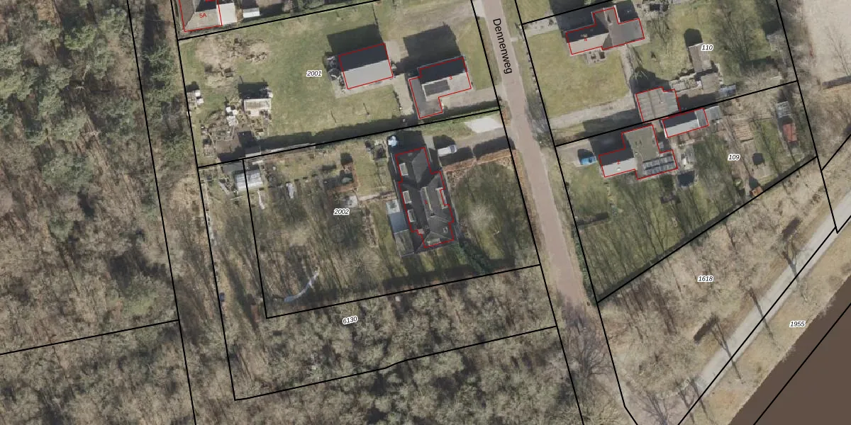 Dennenweg 1 is gelegen op kadastraal perceel SNB00C2002. Deze kadastrale aanduiding is uniek en wordt gebruikt door het Kadaster om eigendomsrechten en andere zakelijke rechten vast te leggen. Het perceel maakt onderdeel uit van de kadastrale gemeente Schoonebeek.