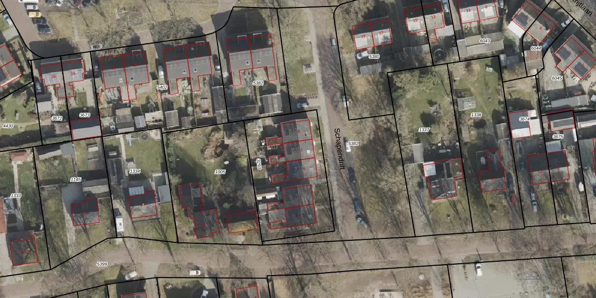 Het perceel waarop Schapendrift 7 staat heeft een oppervlakte van 1013 m². Dit is een zeer groot perceel. De perceeloppervlakte wordt geregistreerd door het Kadaster. Gedetailleerde informatie over de maten van dit perceel kunt u vinden in het rapport Kadastrale kaart met maatvoering van Schapendrift 7.