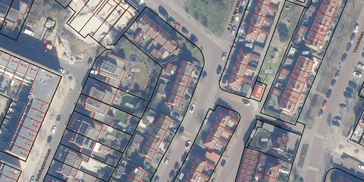 Het perceel waarop A J van der Moolenstraat 33 staat heeft een oppervlakte van 3266 m². Dit is een zeer groot perceel. De perceeloppervlakte wordt geregistreerd door het Kadaster. Gedetailleerde informatie over de maten van dit perceel kunt u vinden in het rapport Kadastrale kaart met maatvoering van A J van der Moolenstraat 33.