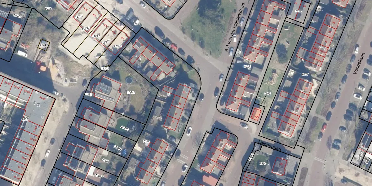 Het perceel waarop A J van der Moolenstraat 37 staat heeft een oppervlakte van 3266 m². Dit is een zeer groot perceel. De perceeloppervlakte wordt geregistreerd door het Kadaster. Gedetailleerde informatie over de maten van dit perceel kunt u vinden in het rapport Kadastrale kaart met maatvoering van A J van der Moolenstraat 37.