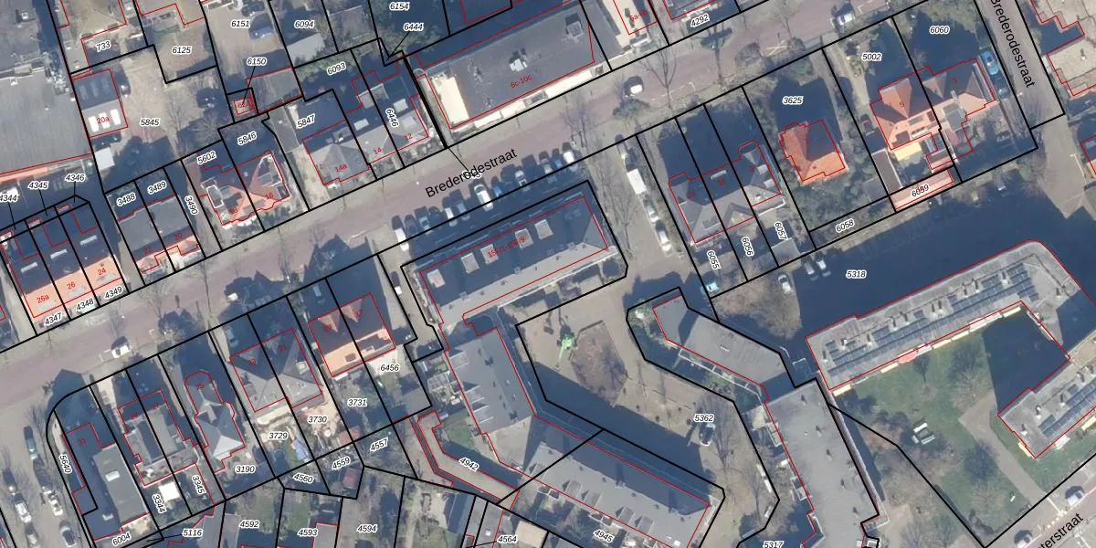 Het perceel waarop Brederodestraat 15-F-6 staat heeft een oppervlakte van 1390 m². Dit is een zeer groot perceel. De perceeloppervlakte wordt geregistreerd door het Kadaster. Gedetailleerde informatie over de maten van dit perceel kunt u vinden in het rapport Kadastrale kaart met maatvoering van Brederodestraat 15-F-6.