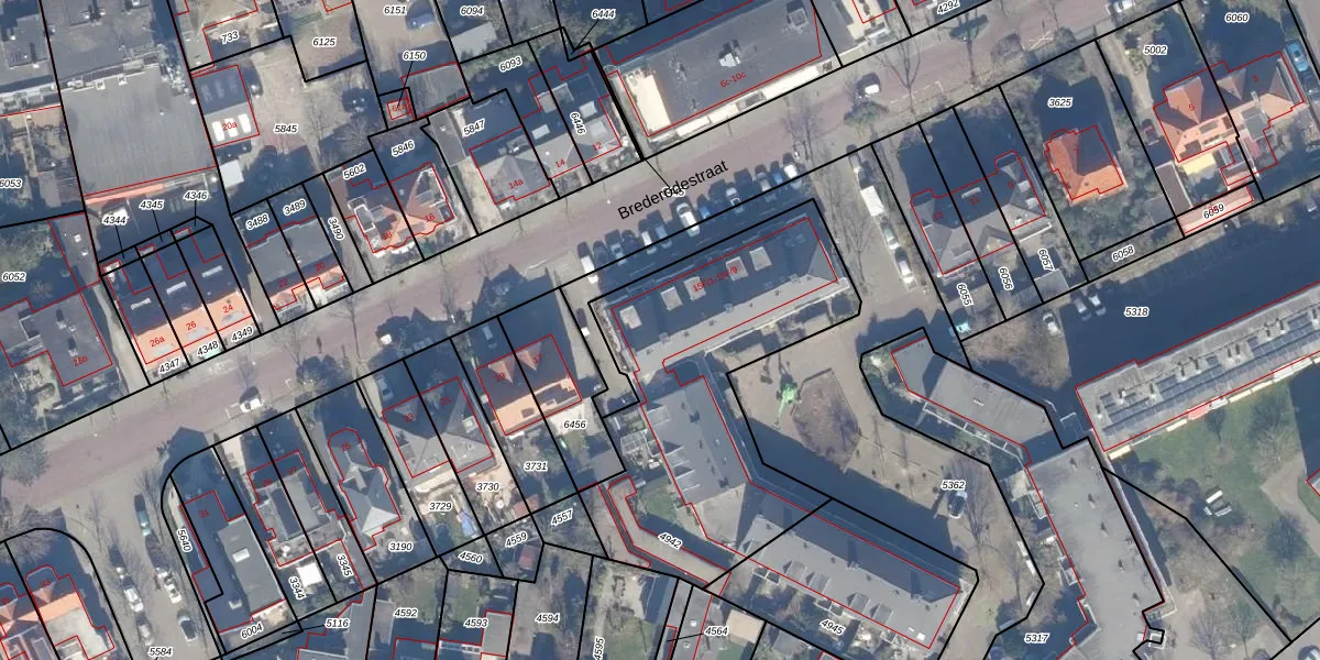 Het perceel waarop Brederodestraat 15-F-11 staat heeft een oppervlakte van 1390 m². Dit is een zeer groot perceel. De perceeloppervlakte wordt geregistreerd door het Kadaster. Gedetailleerde informatie over de maten van dit perceel kunt u vinden in het rapport Kadastrale kaart met maatvoering van Brederodestraat 15-F-11.