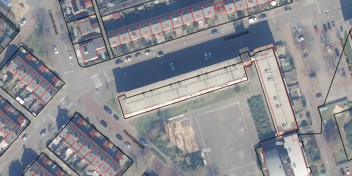 Het perceel waarop Celsiusstraat 178 staat heeft een oppervlakte van 1569 m². Dit is een zeer groot perceel. De perceeloppervlakte wordt geregistreerd door het Kadaster. Gedetailleerde informatie over de maten van dit perceel kunt u vinden in het rapport Kadastrale kaart met maatvoering van Celsiusstraat 178.