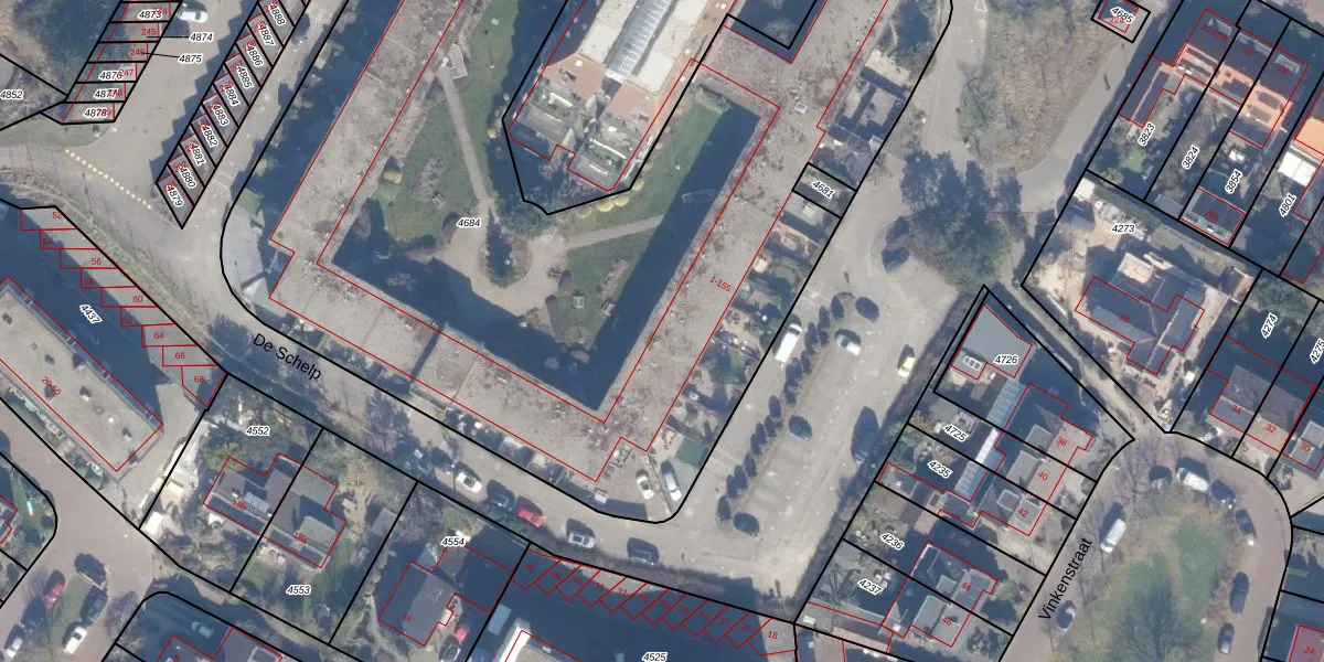 Het perceel waarop De Schelp 25 staat heeft een oppervlakte van 6040 m². Dit is een zeer groot perceel. De perceeloppervlakte wordt geregistreerd door het Kadaster. Gedetailleerde informatie over de maten van dit perceel kunt u vinden in het rapport Kadastrale kaart met maatvoering van De Schelp 25.
