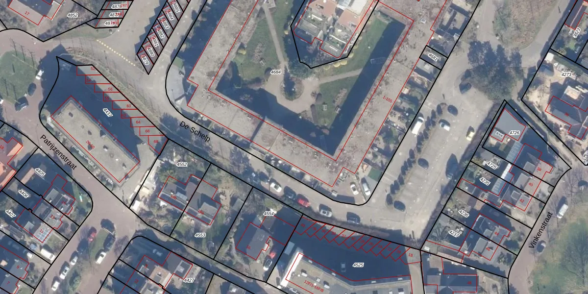 Het perceel waarop De Schelp 5 staat heeft een oppervlakte van 6040 m². Dit is een zeer groot perceel. De perceeloppervlakte wordt geregistreerd door het Kadaster. Gedetailleerde informatie over de maten van dit perceel kunt u vinden in het rapport Kadastrale kaart met maatvoering van De Schelp 5.