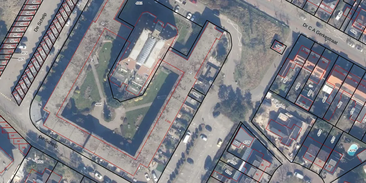 Het perceel waarop De Schelp 50 staat heeft een oppervlakte van 6040 m². Dit is een zeer groot perceel. De perceeloppervlakte wordt geregistreerd door het Kadaster. Gedetailleerde informatie over de maten van dit perceel kunt u vinden in het rapport Kadastrale kaart met maatvoering van De Schelp 50.