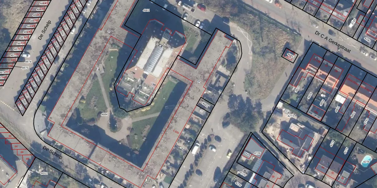 Het perceel waarop De Schelp 51 staat heeft een oppervlakte van 6040 m². Dit is een zeer groot perceel. De perceeloppervlakte wordt geregistreerd door het Kadaster. Gedetailleerde informatie over de maten van dit perceel kunt u vinden in het rapport Kadastrale kaart met maatvoering van De Schelp 51.