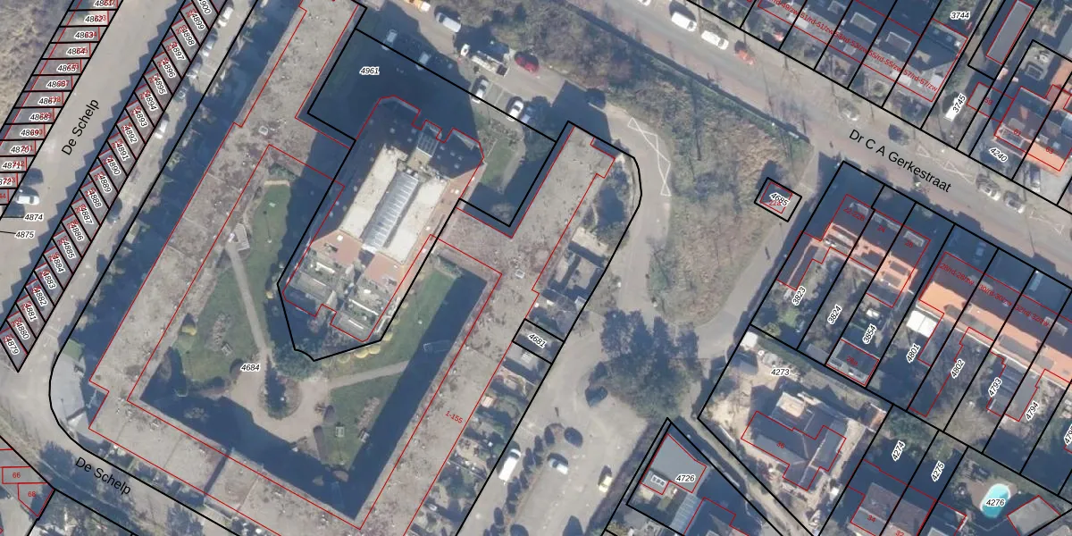 Het perceel waarop De Schelp 66 staat heeft een oppervlakte van 6040 m². Dit is een zeer groot perceel. De perceeloppervlakte wordt geregistreerd door het Kadaster. Gedetailleerde informatie over de maten van dit perceel kunt u vinden in het rapport Kadastrale kaart met maatvoering van De Schelp 66.
