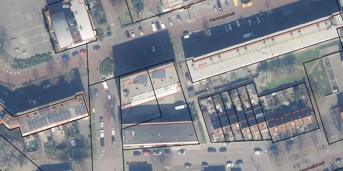 Flemingstraat 102-e is gelegen op kadastraal perceel ZVT00B8252. Deze kadastrale aanduiding is uniek en wordt gebruikt door het Kadaster om eigendomsrechten en andere zakelijke rechten vast te leggen. Het perceel maakt onderdeel uit van de kadastrale gemeente Zandvoort.