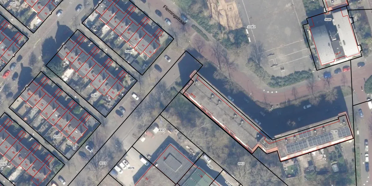 Het perceel waarop Flemingstraat 22 staat heeft een oppervlakte van 1198 m². Dit is een zeer groot perceel. De perceeloppervlakte wordt geregistreerd door het Kadaster. Gedetailleerde informatie over de maten van dit perceel kunt u vinden in het rapport Kadastrale kaart met maatvoering van Flemingstraat 22.