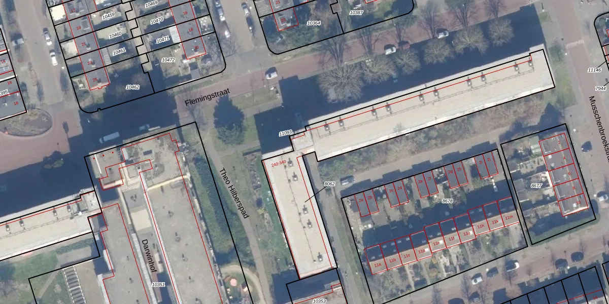 Het perceel waarop Flemingstraat 266 staat heeft een oppervlakte van 1578 m². Dit is een zeer groot perceel. De perceeloppervlakte wordt geregistreerd door het Kadaster. Gedetailleerde informatie over de maten van dit perceel kunt u vinden in het rapport Kadastrale kaart met maatvoering van Flemingstraat 266.