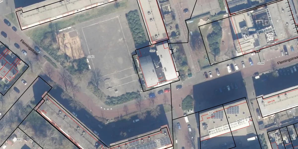 Het perceel waarop Flemingstraat 3-c staat heeft een oppervlakte van 727 m². Dit is een groot perceel. De perceeloppervlakte wordt geregistreerd door het Kadaster. Gedetailleerde informatie over de maten van dit perceel kunt u vinden in het rapport Kadastrale kaart met maatvoering van Flemingstraat 3-c.