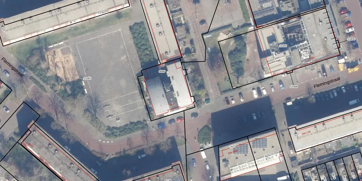 Het perceel waarop Flemingstraat 7-c staat heeft een oppervlakte van 727 m². Dit is een groot perceel. De perceeloppervlakte wordt geregistreerd door het Kadaster. Gedetailleerde informatie over de maten van dit perceel kunt u vinden in het rapport Kadastrale kaart met maatvoering van Flemingstraat 7-c.