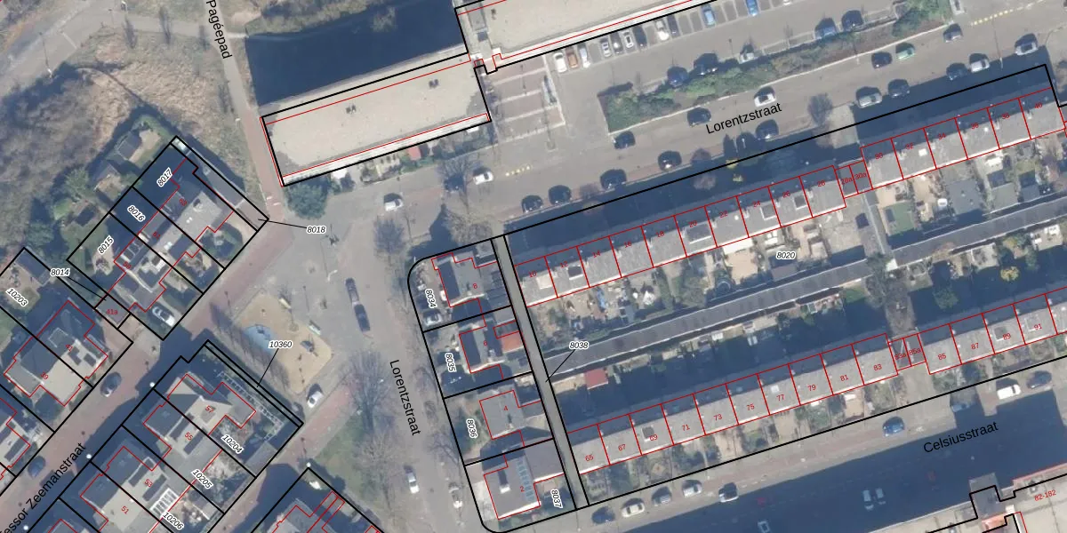Het perceel waarop Lorentzstraat 10 staat heeft een oppervlakte van 5910 m². Dit is een zeer groot perceel. De perceeloppervlakte wordt geregistreerd door het Kadaster. Gedetailleerde informatie over de maten van dit perceel kunt u vinden in het rapport Kadastrale kaart met maatvoering van Lorentzstraat 10.